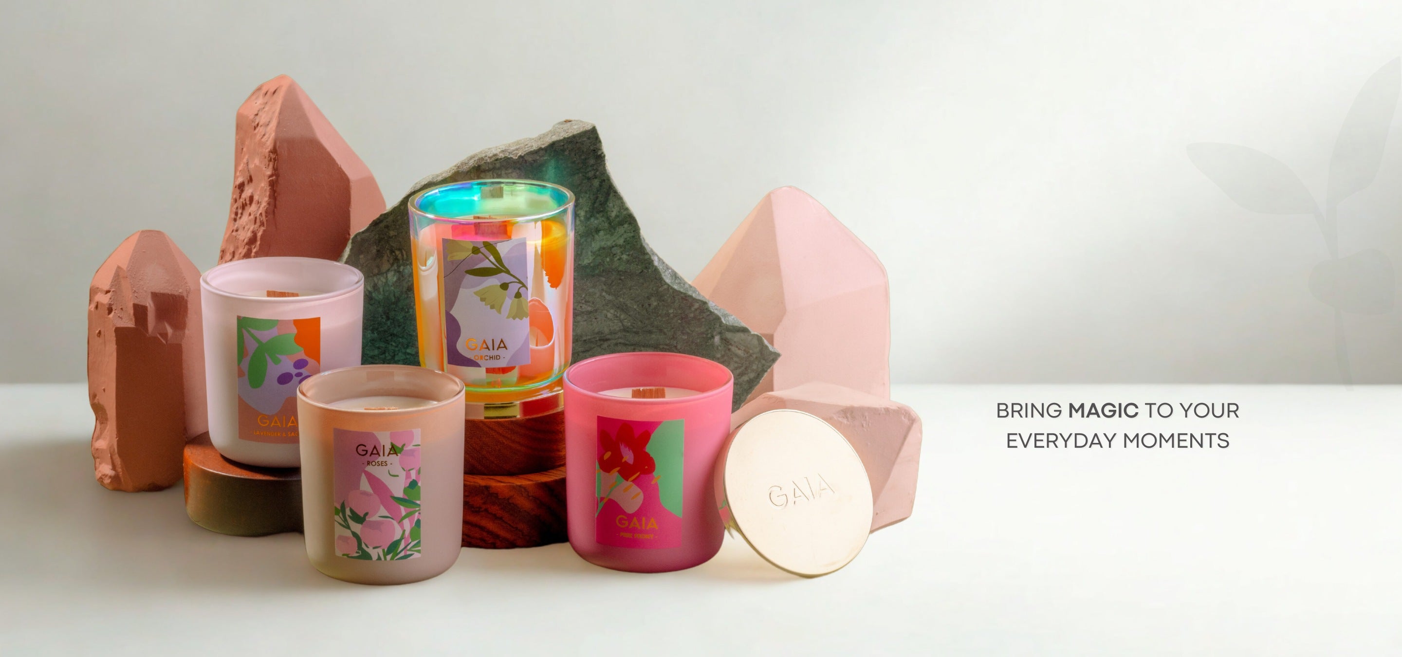 Whether you're setting the mood for a cozy night in or a lively gathering, Gaia Candles bring joy, color, and personality to any space !